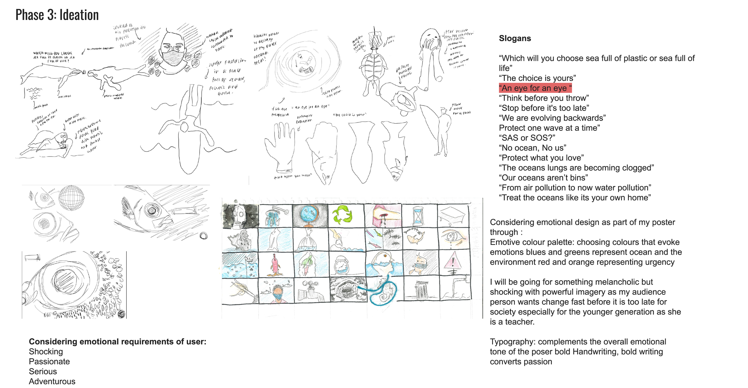 The poster is an exploration of the impact of plastic pollution on marine life through a lens . The darkness of the image conveys the danger, suffocation and quiet suffering that marine creatures experience due to humans doing . The plastic bottle symbolises the consequences of our actions are unavoidable even for the innocent creatures of the ocean . The tagline itself ( a biblical quote) mirrors the harm humans inflict on the environment the ocean and its habitats noting see our actions clearly and the damage will come back to us . It evokes responsibility and accountability which urges viewers to reflect on their own consumption and waste habits.